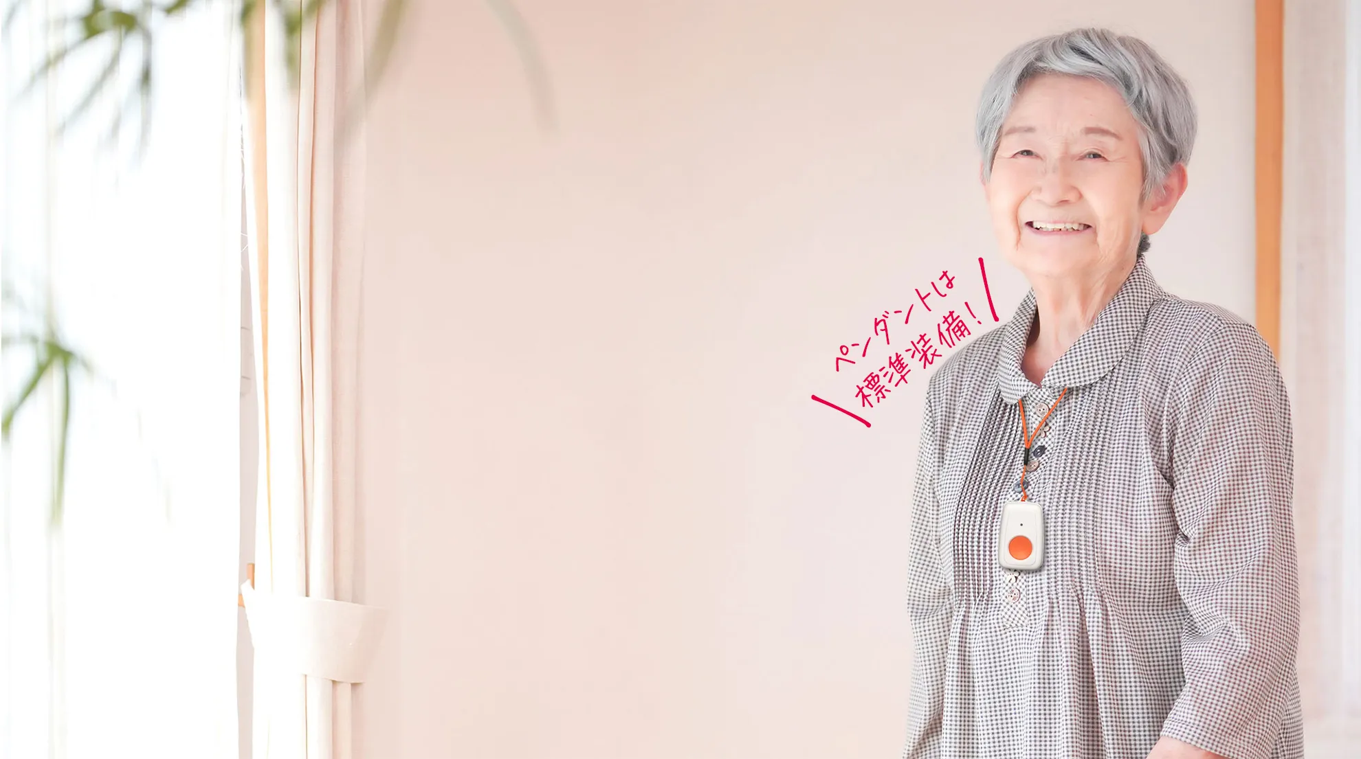 高齢者見守りペンダント(非常ボタン)は標準サービスです。(※室内のみ)